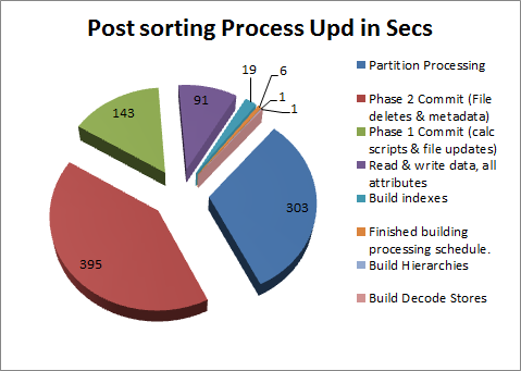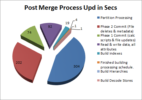 With the commit at 395 seconds with have around 250,000 metadata objects that have to be worked through so on a regular basis we merge our partitions as this reduces the number of indexes and therefore the number of metadata objects. Once we do the the merge our process update now looks like this.