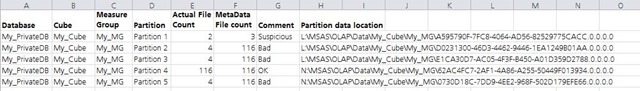 As you can see I can now tell what partition a particular directory belongs to, the output also included file counts from the file system and what SSAS expected because i was looking for partitions that had missing files.